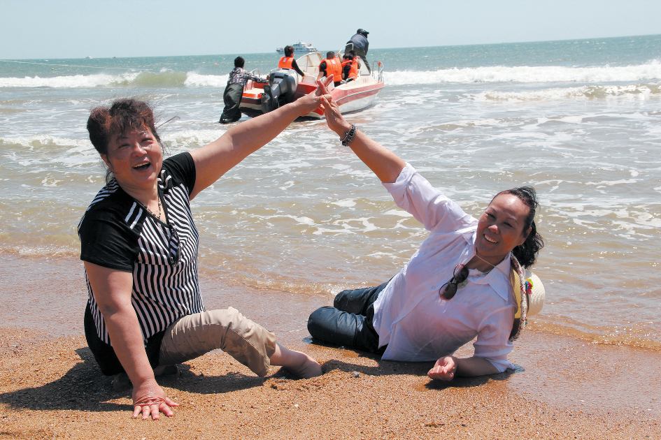 当双手终于摸到浪花时,有的游客竖着大拇指激动地说:“为了看大海,你不知道我们做了多少努力,想了多少办法,我们打算用矿泉水瓶装海水,拿手提袋装沙子,甚至想用橡胶轮胎‘划’到海水边,哪怕用手拍打下浪花也知足了。真没想到你们能让我们走进大海里了。”