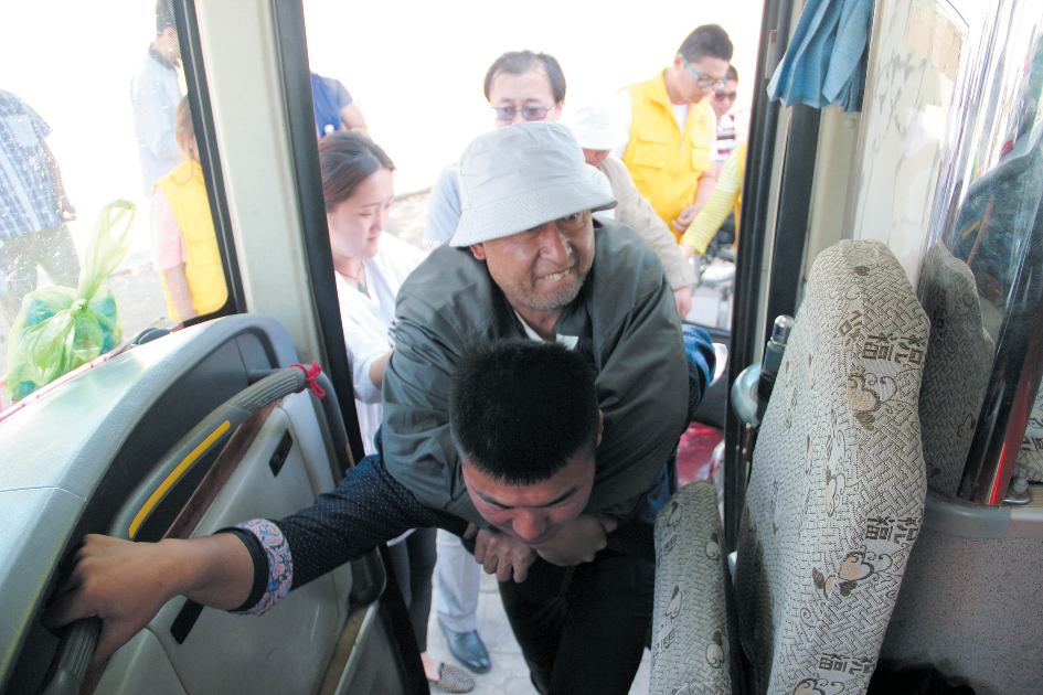 5月19日上午,蒋队长一行到达日照,41名残疾人,最大的已经60多岁。考虑到这个团体的特殊性,滕兆敏从志愿者当中挑选出最有经验、心理素质最好、最细心的20多名照顾他们。