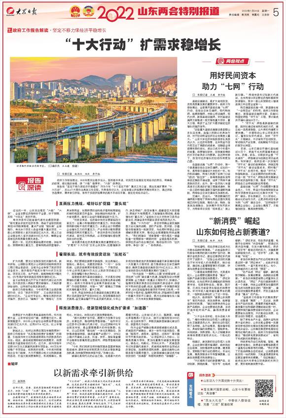 有效需求是经济高质量发展的重要驱动力。“扩需求‘十大行动’立足山东实际、挖潜增新并行,涉及领域广、投资体量大,蕴藏着巨大投资潜力,既能扩大短期需求,又能增强长期动能,是稳增长的‘重头戏’。”省政协文化文史和学习委员会副主任、民建省委专职副主委李旭茂委员认为。