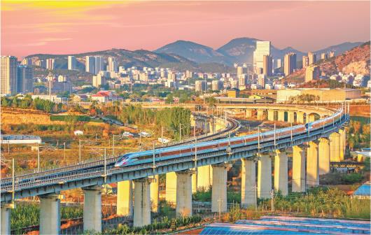 动车组列车驶出济南市区。(□通讯员王玉建报道)