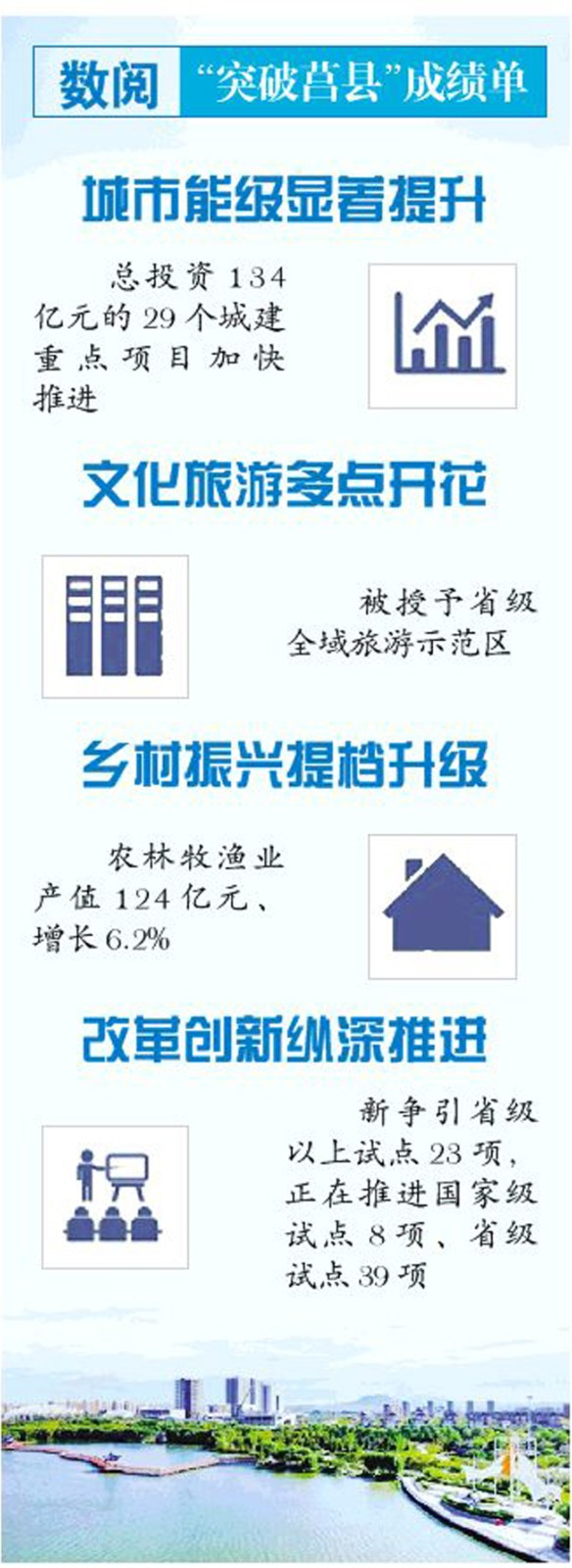 城市能级显著提升。总投资134亿元的29个城建重点项目加快推进,去年交付棚改安置房2760套,改造老旧小区26个、1543户;投资18亿元在全省率先建成城乡供水一体化工程,实现了城乡供水“同源、同网、同质、同监管、同服务”。