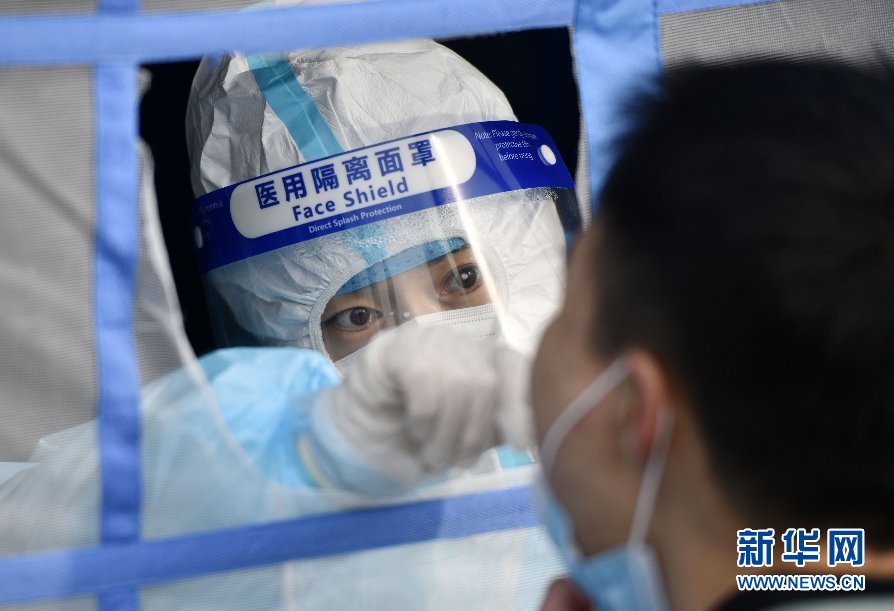 1月9日,在天津滨海高新区的一处核酸检测点,工作人员在为群众做核酸采样。 新华社记者 赵子硕 摄