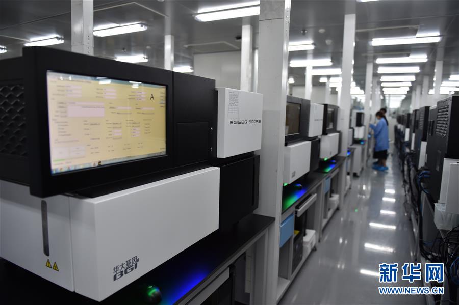 2017年7月13日,工作人员在位于深圳的中国国家基因库操作基因测序仪测序。新华社记者毛思倩摄