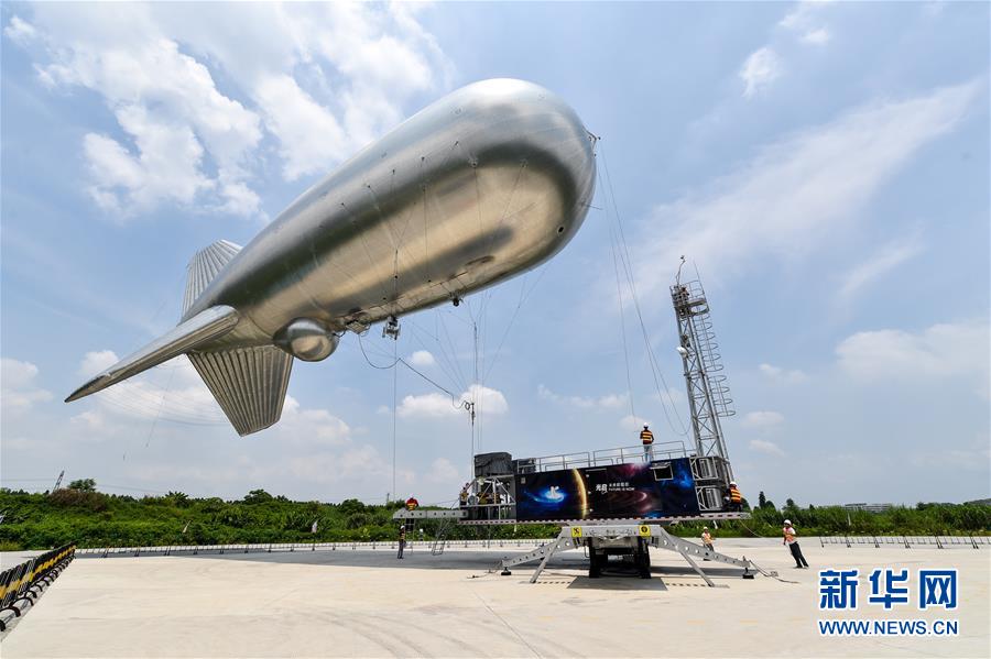 在光启东莞生态园的研发基地,集广域互联网信息传输和光学监控于一体的“云端号”准备升空(2016年7月7日摄)。新华社记者毛思倩摄