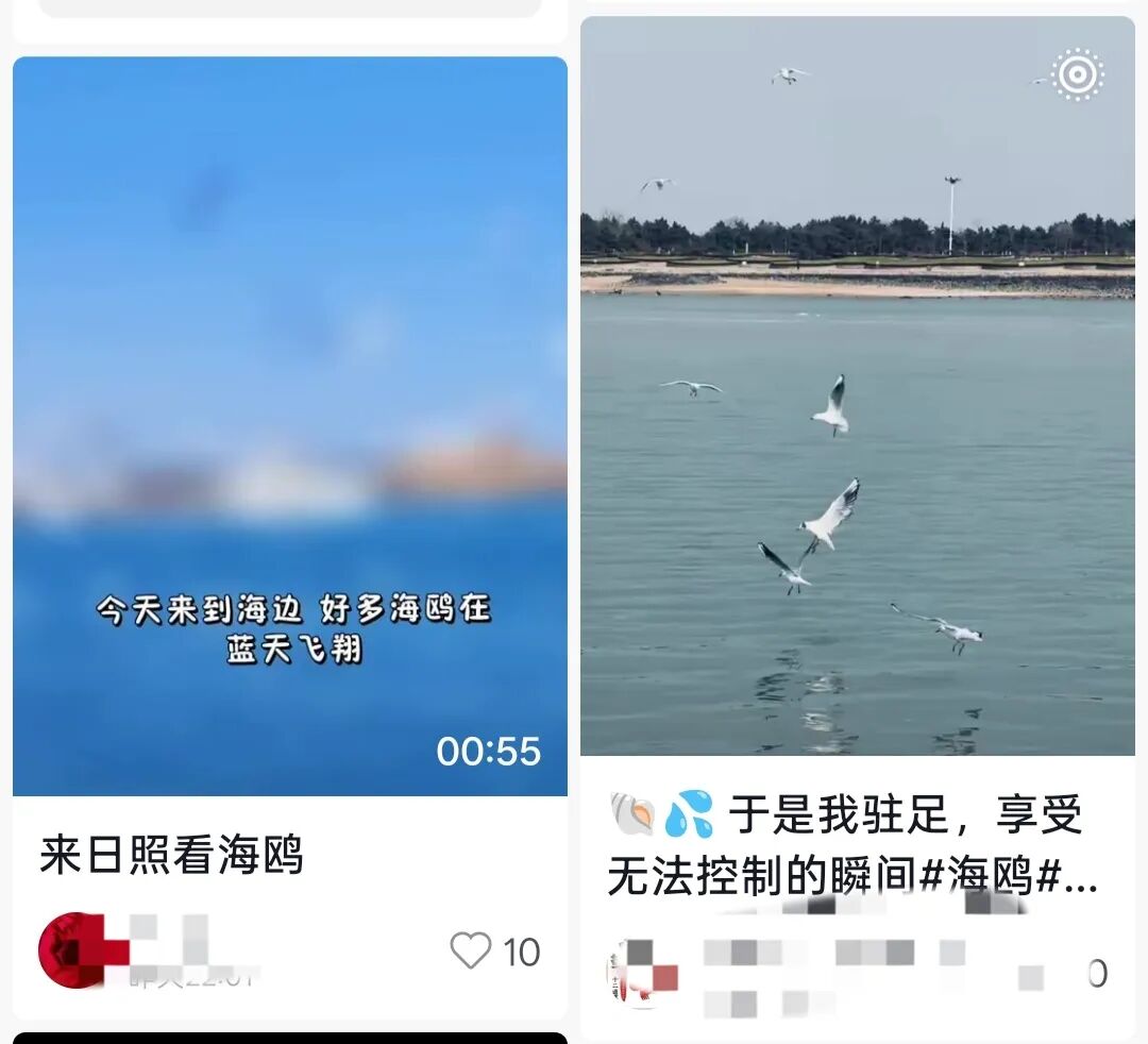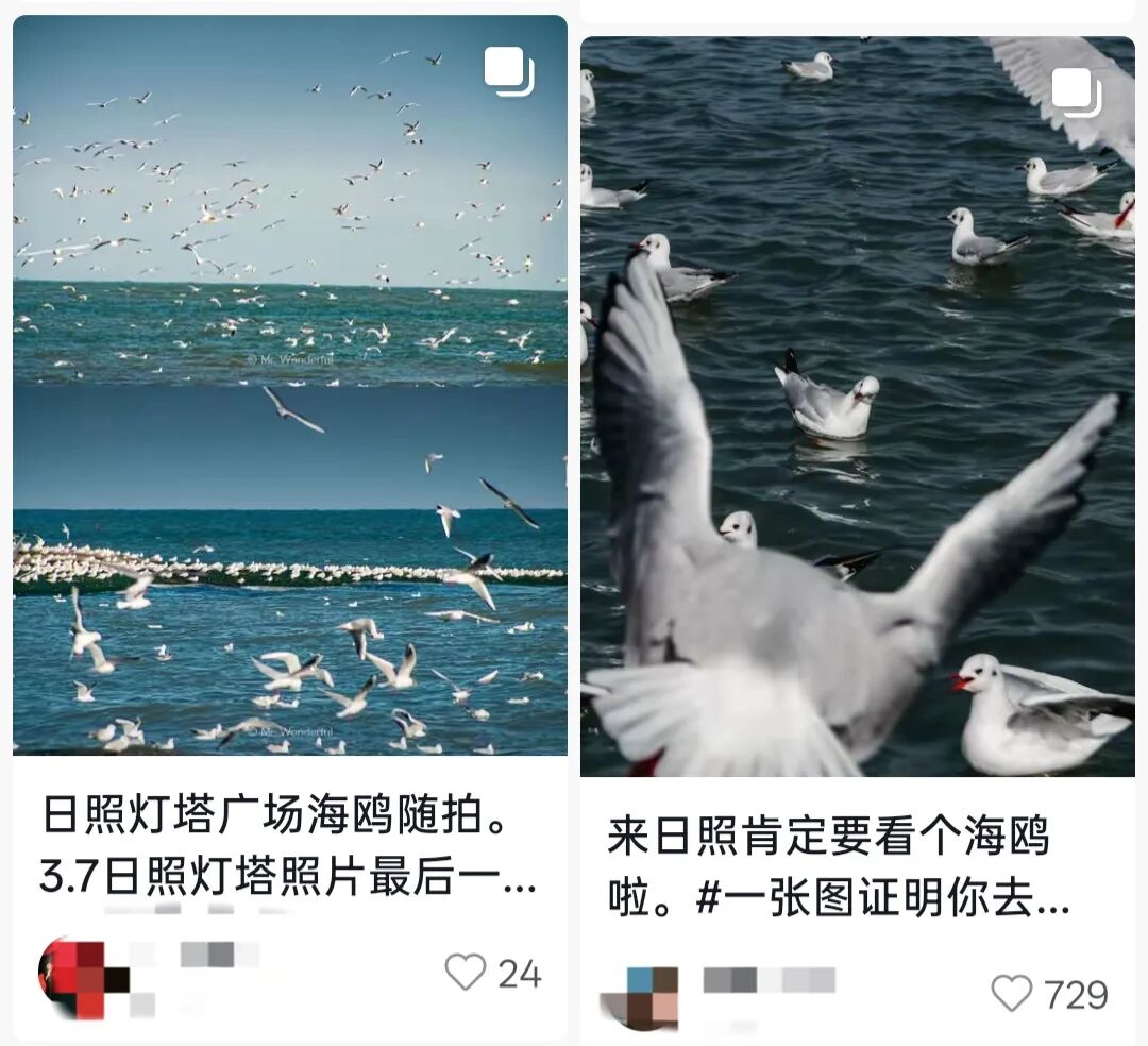 “这是属于大海的浪漫”“面包刚拿出来就被抢了”“总要来一次日照吧!看干净的海,吹温柔的风,喂成群的海鸥”……在社交平台,这样的分享比比皆是。