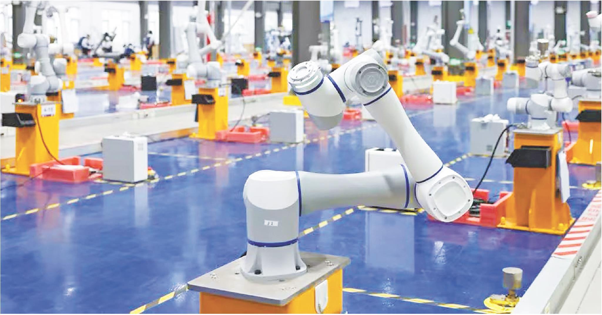 在越疆智能机器人日照生产基地,协作机器人智能机械臂正在进行出厂前的老化测试。(资料图)
