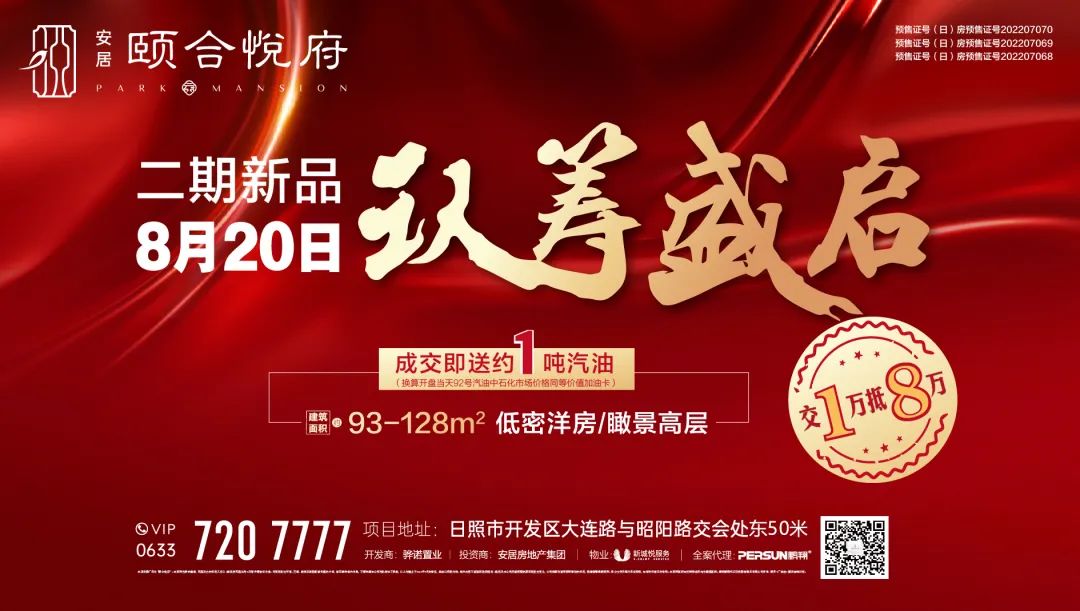 预售证号:(日)房预售证第202207068、(日)房预售证第202207069、(日)房预售证第202207070;本项目推广名为“颐合悦府”,本资料为要约资料,买卖双方的权利义务以《商品房买卖合同》及附件等协议为准。对项目周边环境、交通、教育及其他配套设施的介绍,旨在提供相关信息,不意味着本公司对此作出了承诺,以上为我司截至2022年8月的情况,具体以实际为准,相关内容不排除因政府规划、规定及本公司未能控制的原因而发生变化,公司保留对宣传资料修改的权利,敬请留意最新资料。部分文字及图片来自网络,如有侵权请及时告知。本资料面积如无特殊说明均为建筑面积。最终解释权归日照骅诺置业有限公司所有。落实《广告法》建设诚信日照。