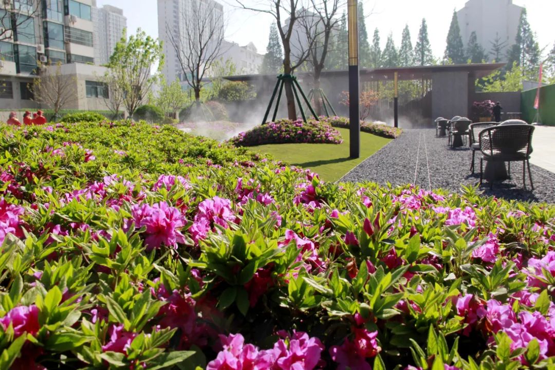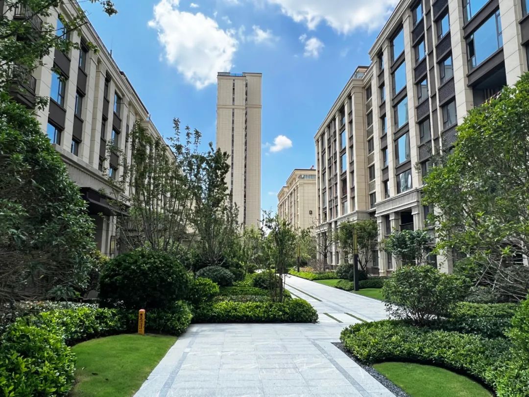 园区中花木交错盈盈绿意贯穿社区畅享绿意鲜氧生活