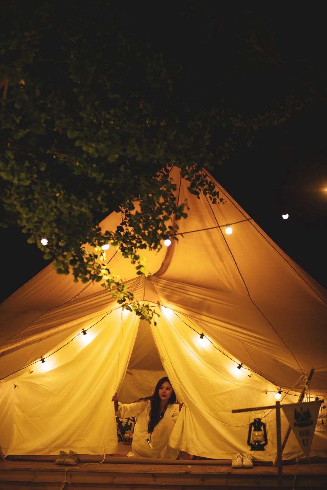 夜晚星星灯搭在外帐上,你可以听见林间鸟语,秋虫密语。试着和孩子一起仰望星空,和森林所有生灵一起歌唱。