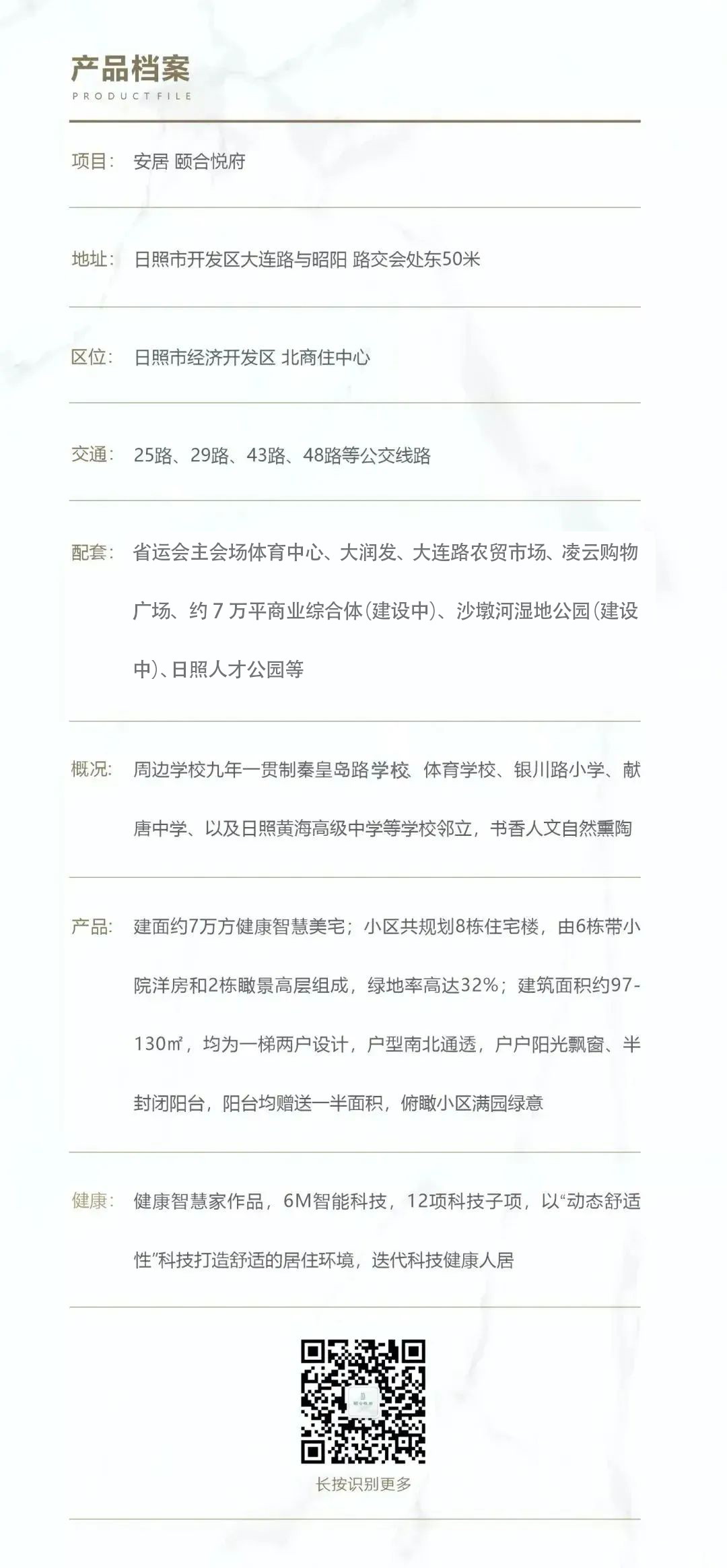 预售证号:(日)房预售证第202207068、(日)房预售证第202207069、(日)房预售证第202207070;本项目推广名为“颐合悦府”,本资料为要约资料,买卖双方的权利义务以《商品房买卖合同》及附件等协议为准。对项目周边环境、交通、教育及其他配套设施的介绍,旨在提供相关信息,不意味着本公司对此作出了承诺,以上为我司截至2022年11月的情况,具体以实际为准,相关内容不排除因政府规划、规定及本公司未能控制的原因而发生变化,公司保留对宣传资料修改的权利,敬请留意最新资料。部分文字及图片来自网络,如有侵权请及时告知。本资料面积如无特殊说明均为建筑面积。落实《广告法》建设诚信日照。
