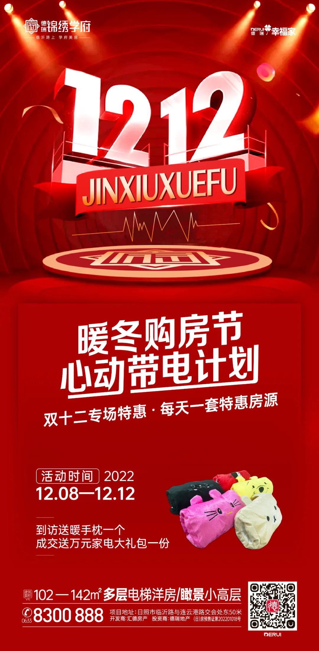 12月8日-12日,到访售楼处即可免费领取暖手枕一份。好礼多多,何不抓住置业良机,让自己与家人拥有梦想家呢?