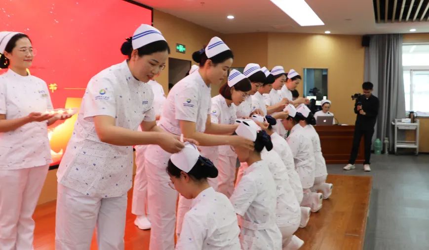 在护士授帽仪式上,21名护士在护理前辈面前戴上燕尾帽、接过明灯,传承南丁格尔精神,随后全体护士在护理部主任李彩霞的领誓下,进行了庄严的宣誓,一句句铿锵有力的誓言让大家深刻感受到自己所从事的这份职业的神圣感、使命感和责任感。