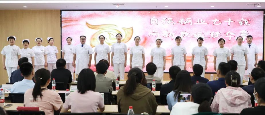 在随后的文艺汇演环节,护理工作者们朗诵了《传承》,并呈现了精彩的歌伴舞《星辰大海》。护理兄弟姐妹们不仅给大家带来一场表演投入、精彩感人的视角盛宴,同时充分展示了市中心医院护理人爱岗敬业、奋发有为、乐于奉献的精神风貌,彰显了他(她)们不忘初心、牢记使命,全力护佑人民生命健康的信心和决心。