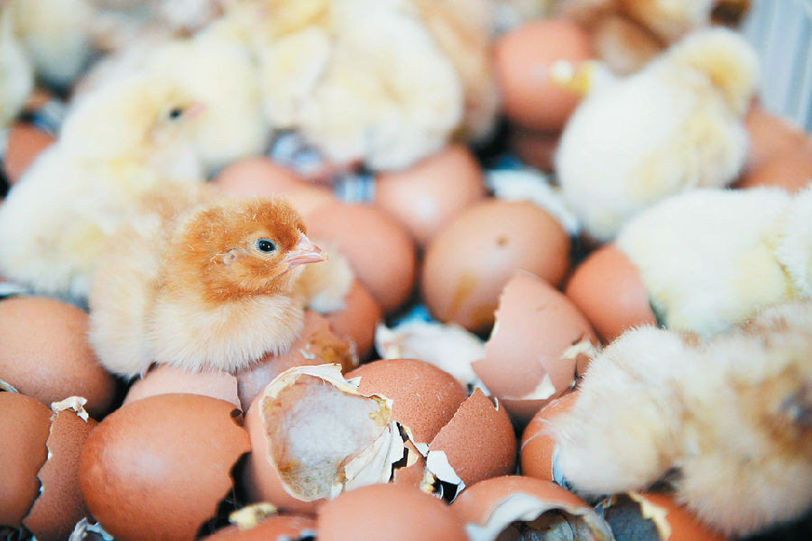 孵化小鸡的过程中,需不断翻蛋,使鸡蛋均匀受热。近些年,现代化箱体式孵化机替代了土法孵化方式,利用这种方式,减轻了劳动强度,产量、孵化质量和成活率大大提高。