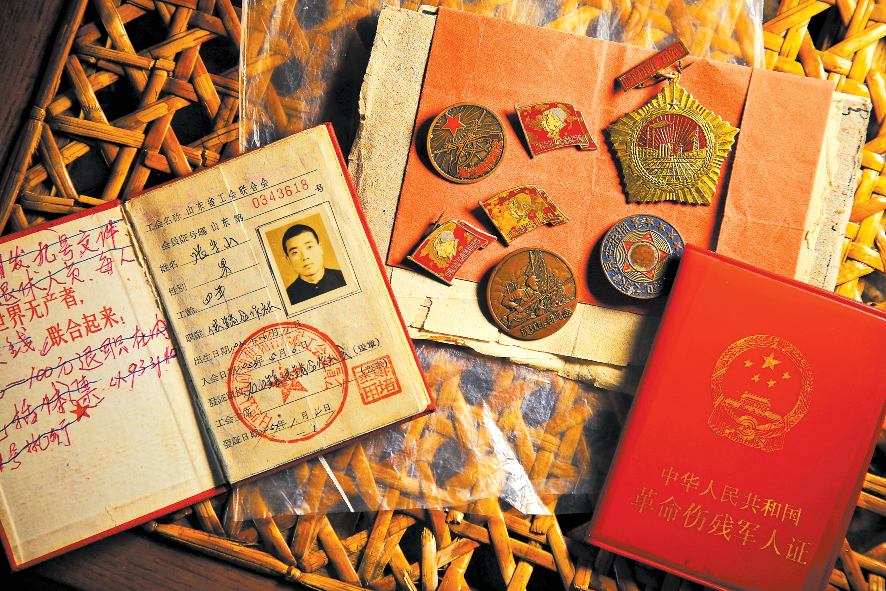 在记者面前,张守山一一展示他的勋章和证书:淮海战役纪念、渡江战役纪念、拥护世界永久和平纪念、中苏友好协会徽章、日照县建设卫星站水库纪念、革命伤残军人证……自从1950年1月从连队宣传干事岗位转业后,张守山就成为一名普通的退役老兵。如今,老人和老伴守着满堂儿孙过着幸福平静的生活。可是,这些勋章和证书无声地诉说着他参加革命战役、生产建设的光辉历程。