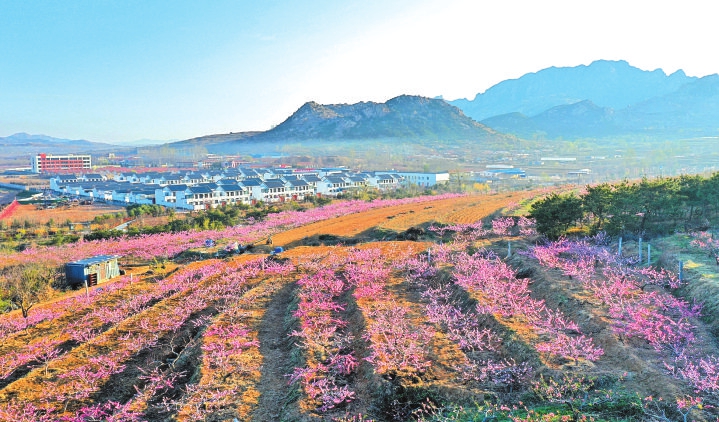 4月10日,记者拍摄的东港区南湖镇石老山村桃树林一角。盛开的桃花宛如一颗颗红宝石镶嵌在山间,构成美丽的“世外桃园”画卷。石老山村群山环抱、林水依偎,环境优美。近年来,该村立足自身生态优势,积极开展村企合作,进行整村开发,建设不老山温泉度假村项目,做好生态+康养+文旅的文章。去年,该村70多户村民搬入新居,住上了“小洋楼”。(日照报业全媒体记者 李青 通讯员 周家平 报道)