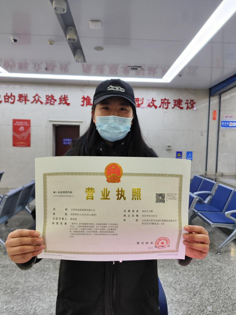 另一位韩女士在元旦假期拿到新能源行业的营业执照。前期,韩女士在“山东政务服务网”进行线上申请公司设立,并通过“全市通办”的方式,将材料提交给东港区行政审批服务局进行受理核准。与窗口工作人员约定元旦假期办理业务后,在1月1日当天便拿到营业执照。