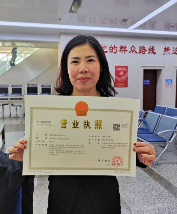 “很开心能够在新年的第一天拿到营业执照,日子好,寓意也好,希望我的新店能在新的一年里蒸蒸日上,越来越好!”