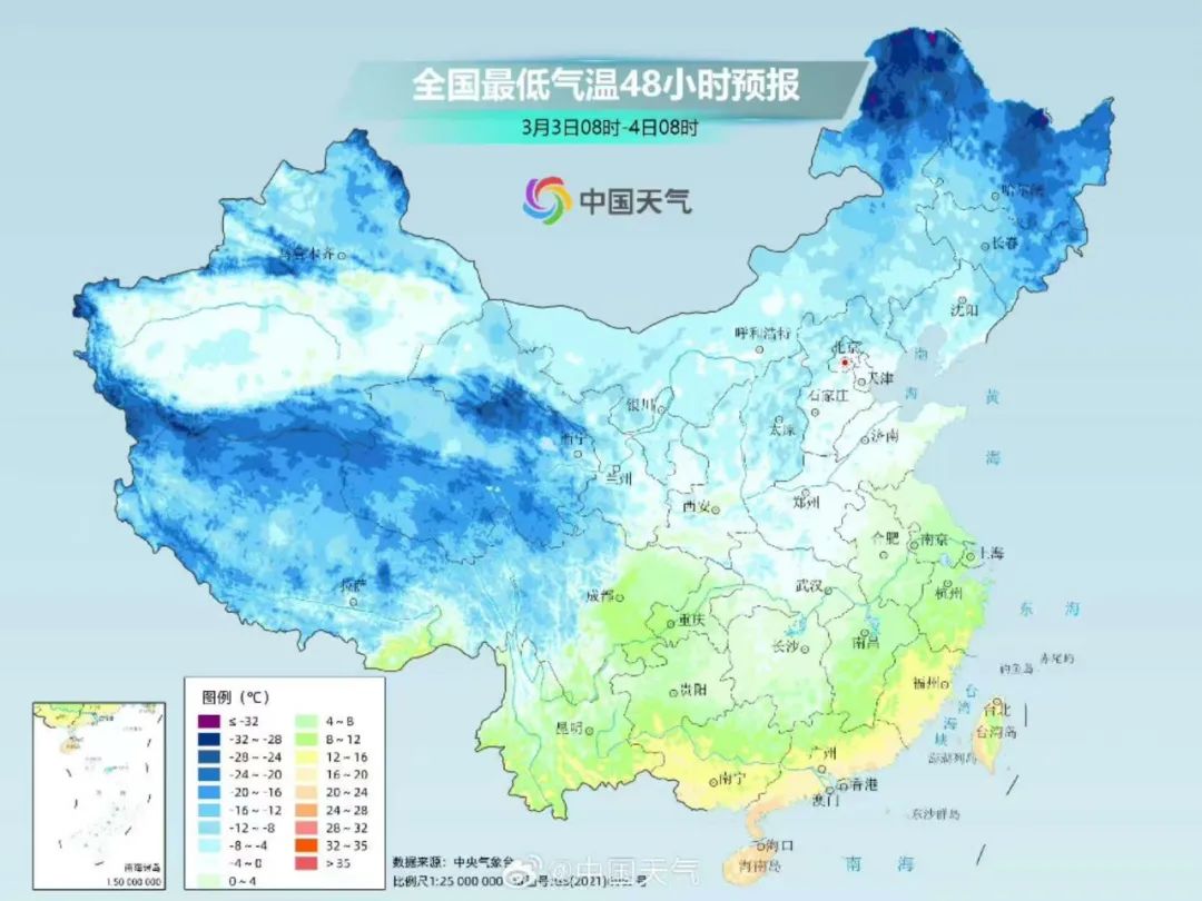 周一(3日):阴有小雨转雨夹雪或雪,东北风6~7级、阵风9级,1~6℃;
