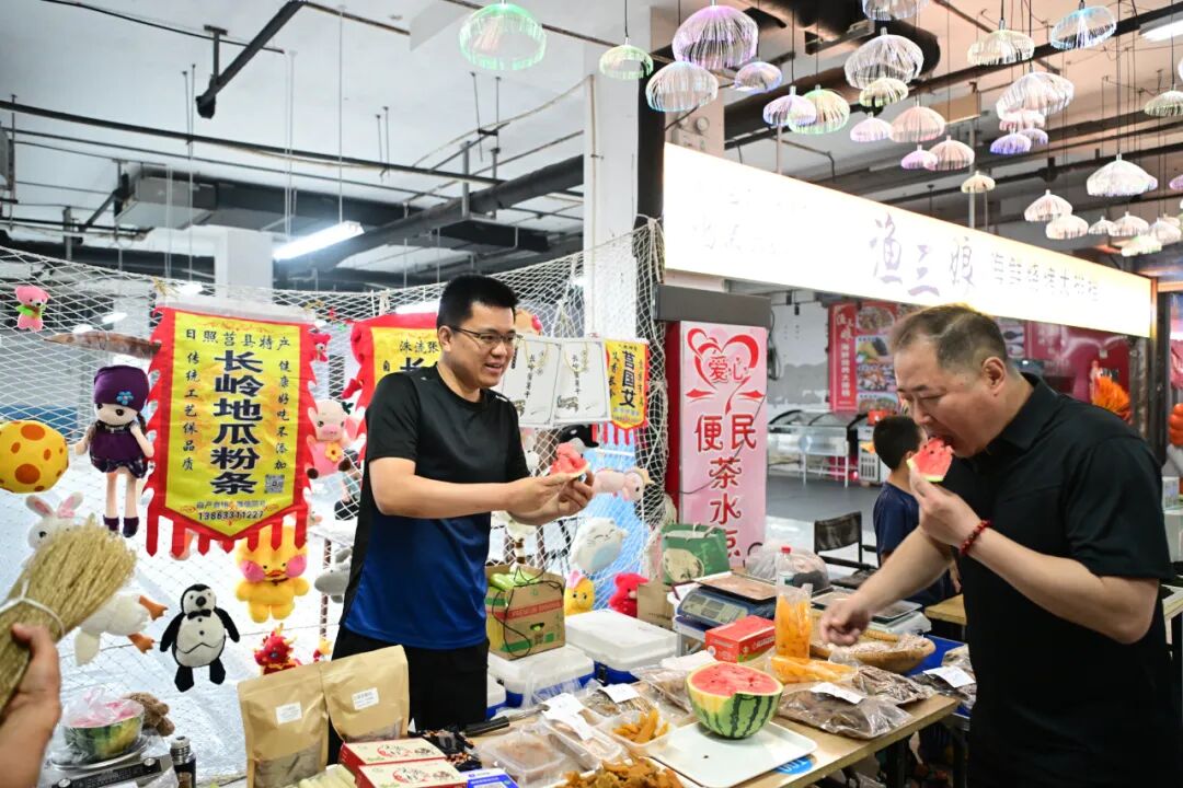 摊位上的热闹藏不住:脆甜的大蟠桃透着亮光,成熟的蓝莓果肉饱满,还有蜂蜜、煎饼、粉条、无添加的石磨面粉……上百种土特产,样样都是第一书记们精挑细选的“心头好”,关键是价格实在,性价比超高!