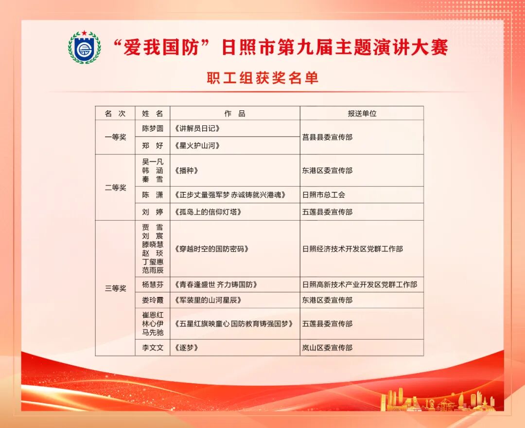 赛事落幕,薪火长燃,这场全民参与的主题演讲,正将“关心国防、热爱国防、建设国防、保卫国防”的信念,深植于黄海之滨的每一寸土地。日照市将以此次大赛为新的起点,持续创新方法手段,丰富实践载体,拓展教育方式,推动全市全民国防教育走深走实,吸引更多的优秀人才把青春、智慧和力量奉献给国防和军队现代化建设!