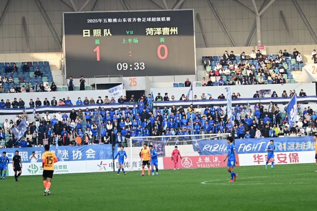 看台上,“日照!战斗!”的助威声浪裹挟着海风奔涌不息,蓝色球迷方阵与菏泽曹州队的客场助威团遥相呼应,将两座城市对足球的热爱化作赛场最热烈的背景音。这不仅是球员在草皮上的攻防较量,更是日照“山海气魄”与菏泽“曹州底蕴”的跨城对话,每一次抢断、传球与射门,都牵动着全场观众的心跳。
