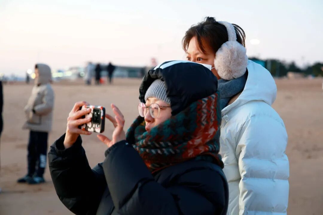 游客们纷纷举起手机定格美好