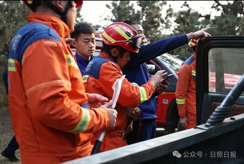 接到报警后,日照山海天旅游度假区卧龙山消防救援站立即派救援人员赶赴现场。途中,消防救援人员与被困者取得联系,通过位置共享,获悉被困者的大概位置在偏西南方向,属于荒山地带。