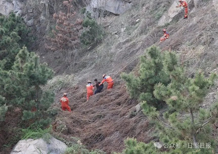 为及时将受伤男子安全转送到山下,救援人员将绳索固定在树木上,受伤男子抓住绳索,在消防员的搀扶下,慢慢向山下挪动。经过一个多小时的全力营救,受伤男子被成功转送到山下。