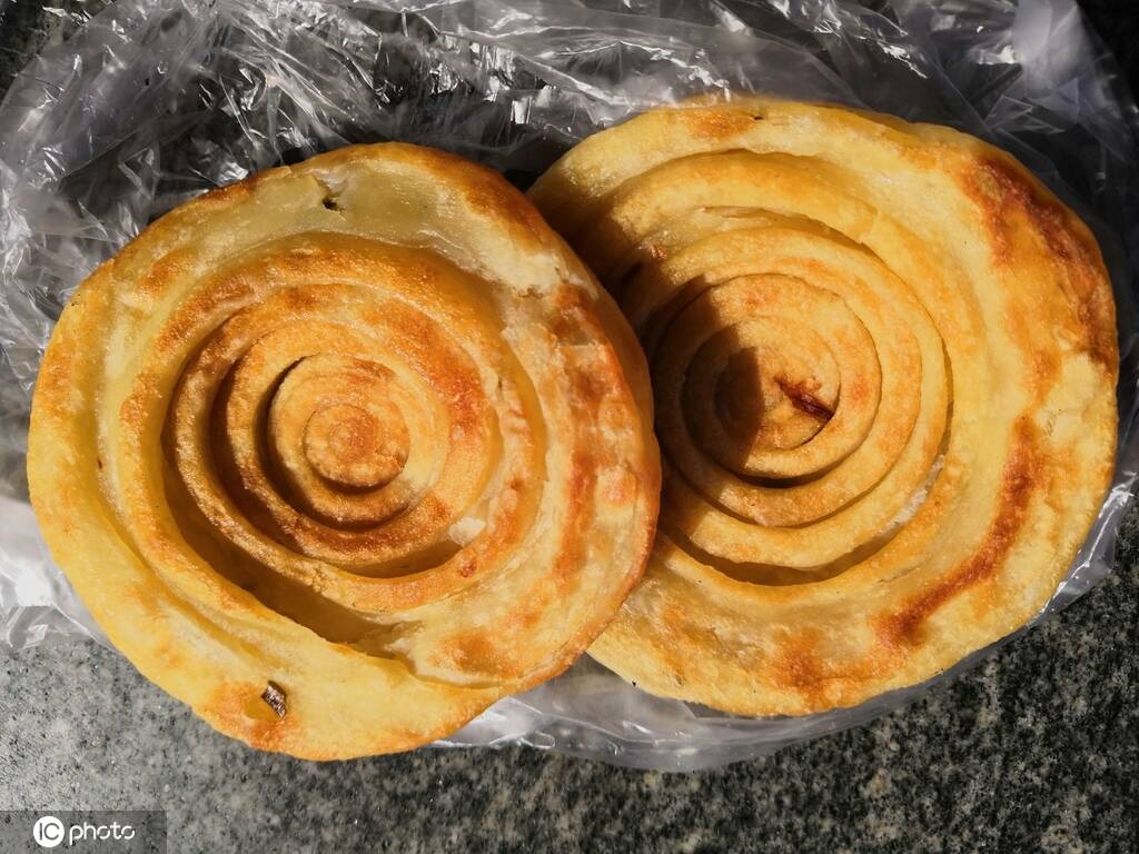 油旋,又叫“油旋回”,是山东济南特色传统名吃,外皮酥脆,内瓤柔嫩,葱香透鼻,因其形似螺旋,表面油润呈金黄色,故名油旋。