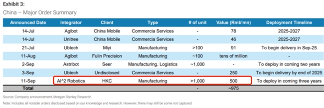 这不仅是当时中国人形机器人领域金额最大的一笔订单,也被大摩视为判断“机器人时代正在加速到来”的关键证据。