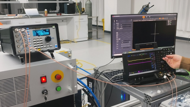为消除泵浦激光器脉冲能量涨落对荧光图像灰度值起伏影响,造成虚假的化学反应强弱变化,工程师们引入光电二极管对每个激光脉冲能量进行同步采样,并通过示波器记录脉冲峰值,建立激光能量随时间变化的基准序列,与PLIF子系统中的千眼狼高速摄像机S1310M采集的帧编号对齐,后续利用千眼狼RFlow4流场测量软件进行灰度强度校正,确保荧光强度的时域稳定性。