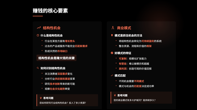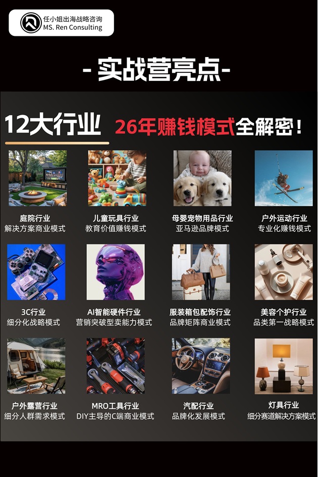“我们讲的并不仅仅是这12个行业,而是通过这些行业案例,揭示企业赚钱的本质机会和模式。”创始人任朝茜强调。从儿童玩具、母婴行业的“赚谁的钱”,到宠物品类的“赚哪个环节的钱”,再到结构性空白机会的发现与抓住,每个案例背后都蕴含着深刻的战略思考。