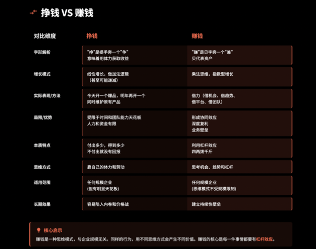 三、挣钱VS赚钱:思维转变创造价值