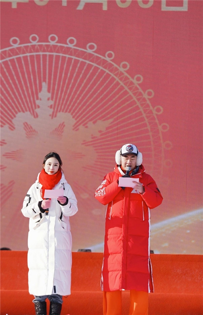 晶莹剔透的冰雕城堡前,新人代表们手捧冰雪吉祥物,身着精致礼服,在悠扬的婚礼进行曲中牵手踏上红毯,一步步走向象征幸福的典礼台。本次婚典由黑龙江文旅推荐官冰城左右哥担纲主持,他的主持风格活泼又不失庄重,将这场婚礼盛典流程串联得温馨动人,为新人们的幸福时刻增添了别样的光彩。