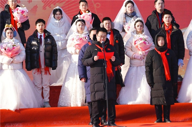 冰筑良辰承佳偶,雪映初心证良缘。2026年1月6日,作为哈尔滨国际冰雪节标志性活动之一的第四十二届“四季沐歌”公益冰雪集体婚礼盛典,在梦幻璀璨的哈尔滨冰雪大世界圆满落幕。来自黑龙江、吉林、辽宁、山西、浙江、贵州、山东、广东、陕西、安徽、河南、河北、重庆、青海、云南、上海、内蒙古、四川18个省、自治区和直辖市的42对新人,怀揣着对爱情的憧憬与对冰雪的向往,在这座“冰雪之都”许下相守一生的誓言,让纯洁冰雪成为爱情最珍贵的见证。央视新闻、新华社、网易、哈尔滨经济广播、极光新闻等媒体全程直播婚礼盛况。