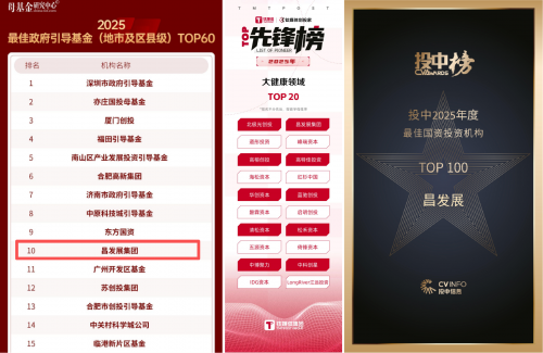 2026年开年之际,昌发展集团捷报频传,先后获得母基金研究中心2025最佳政府引导基金(地市及区县级)TOP60第十名、钛媒体创投家先锋榜大健康领域Top20、投中信息2025年度投中榜-2025年度最佳国资投资机构TOP100三项奖项,充分体现在市场、媒体等对于昌发展集团以科技金融为重要抓手,在推动科技创新、赋能区域经济高质量发展等方面所取得成效的高度肯定。