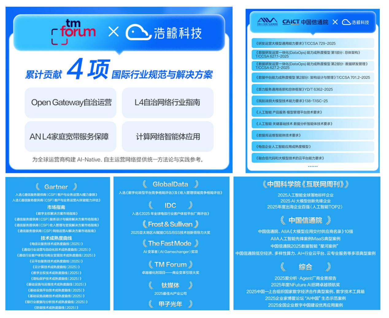 技术创新与商业落地获行业高度认可。入选 Gartner《通信服务提供商客户与业务运营 AI 魔力象限》等多项权威指南,斩获Frost & Sullivan亚太地区AI赋能OSS/BSS技术创新领导力大奖等荣誉;累计贡献TMF 4 项国际行业规范、中国信通院10+项标准制定,入选中国信通院大模型应用交付供应商10强,钛媒体2025最佳AI产业公司、并荣获上合组织、企业家博鳌论坛等多项荣誉,成为2025人工智能全球落地标杆企业。