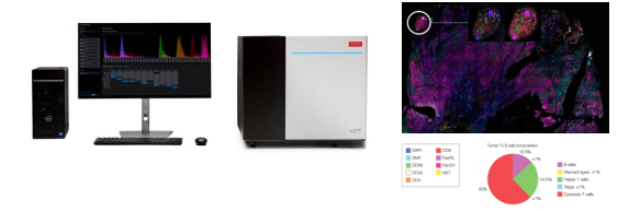 软件功能与个性化方案进一步提升成像价值:EVOS S1000 空间软件集成实时光谱解析技术,可在单一采集轮次中完成八个荧光marker与核染色(共九重标记)的同步捕获,避免传统多次循环成像对组织的物理损伤;内置光谱解析算法,自动分离重叠的荧光信号,配合团队根据样本类型定制的成像方案,串色干扰进一步降低;“潜望镜” 导航模式可快速定位组织区域,自动对焦与图像拼接功能实现全玻片无缝成像,无需后续离线处理,仅需1小时即可完成1 cm2样本在20倍镜下的9色采集、光谱解析和拼接全流程。更重要的是,图像输出采用 OME-TIFF 通用格式,完美兼容 Qpath、HALO 、APTime等第三方分析软件,避免因格式不兼容导致的数据分析局限性,真正实现 “采集即可用”。