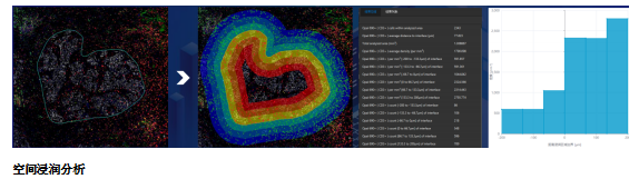 针对细分研究场景,还提供特色功能模块:空间浸润分析可自定义注释边界与距离区间,例如以肿瘤边界为 0 轴,分析200 um范围内CD3 + 免疫细胞的分布,输出数量、密度、距离等统计数据,清晰量化免疫细胞的浸润深度与趋势;图像配准功能支持连续切片的跨图像分析,可将多张免疫组化图像叠加融合为伪多色荧光图像,分析不同切片中细胞的空间位置关联;此外,针对肾脏疾病研究的肾小球 AI 识别、针对免疫研究的三级淋巴结构(TLS)分析、针对神经科学的神经轴突追踪等功能,进一步拓展服务的适用范围。汇东佰生物还会根据研究方向调整分析参数与报告形式。