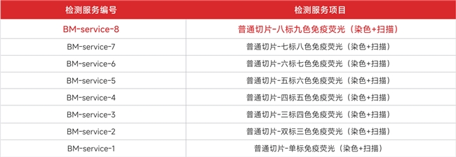 在技术方案上,聚焦痛点解决核心问题:主要采用 Thermo Aluora 系列专用染料,结合定制化 TSA 放大流程,将信号强度提升至传统荧光染色的 10 倍以上,有效解决“8标9色”场景中 “弱信号难捕捉” 的问题;通过预实验验证染色顺序与抗体浓度,提前规避不同靶点间的交叉反应与信号丢失;可根据客户需求定制染色方案。无论是基础科研的小样本探索,还是临床前研究的批量样本检测,该环节均能实现 “结果可重复、数据稳定” 的核心目标。