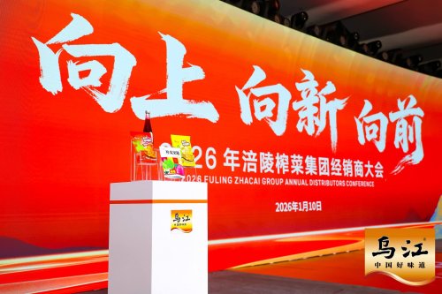 2026年1月10日,涪陵榨菜集团经销商大会成功举办。本次大会以“向上、向新、向前”为核心主题,并以“传承风味,创新未来”为主线举行新品发布会,成为全场焦点。集团旗下家庭、餐饮、国际与新渠道四大销售事业部的经销商代表齐聚一堂,共同回顾了2025年发展成果与战略积淀。会上,集团正式发布了8款新品,以产品创新为引擎,为新一年发展注入活力、筑牢渠道基础。此举彰显出行业龙头通过持续创新推动高质量发展的坚定决心与前瞻视野。