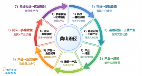 白皮书分析认为,黄山以智算推动智能经济转型升级,形成了清晰的演进脉络:从科技突破筑牢基础设施根基,到聚焦文旅王牌产业深挖场景价值;从产品化落地形成市场竞争力,到构建业务闭环实现自我造血;最终达成多维收益增长与区域辐射扩散的发展格局。这一路径构建起“旅游+高新技术”双轮驱动增长极,显著提升了区域GDP发展效率。数据显示,黄山智能经济转型带来的效率提升已转化为可量化的经济价值。