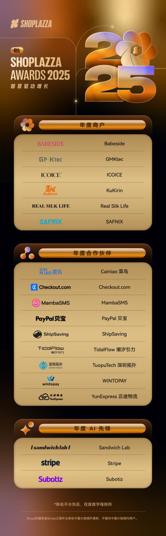 近日,店匠科技(Shoplazza) 正式发布 2025 Shoplazza Awards。
