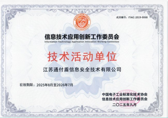 近日,通付盾凭借在信息技术应用创新领域的持续深耕与突出贡献,蝉联“信息技术应用创新工作委员会技术活动单位”称号!这一权威认证,既是行业对通付盾技术硬实力与产业价值的高度肯定,更印证了公司在信创赛道上稳健前行的坚实步伐。