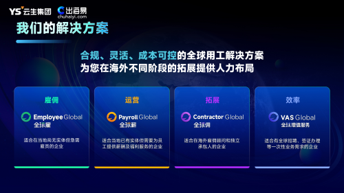 作为深耕人力资源服务领域的科技型企业,云生集团自2015年成立以来,始终以“让社会更高效”为使命,聚焦企业人力资源管理核心需求。2022年,云生集团推出出海品牌“出海易Chuhaiyi”,并在中国香港、新加坡、越南、马来西亚、泰国、印尼等地设立直营分支机构,正式开启以数智化力量护航中企出海的征程。