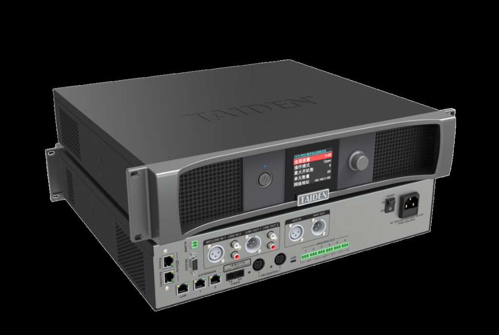 作为支持全TAIDEN系统互联的智能会议中枢,它不仅集成了音频、高清视频、千兆网络及调试接口,更可无缝切换为电子名牌系统服务器或AI智能转录翻译系统的核心终端,支持20余种语言的实时翻译、文稿编辑、AI辅助提炼与音频文件处理,是实现无纸化会议与多场景协同的高效工具。