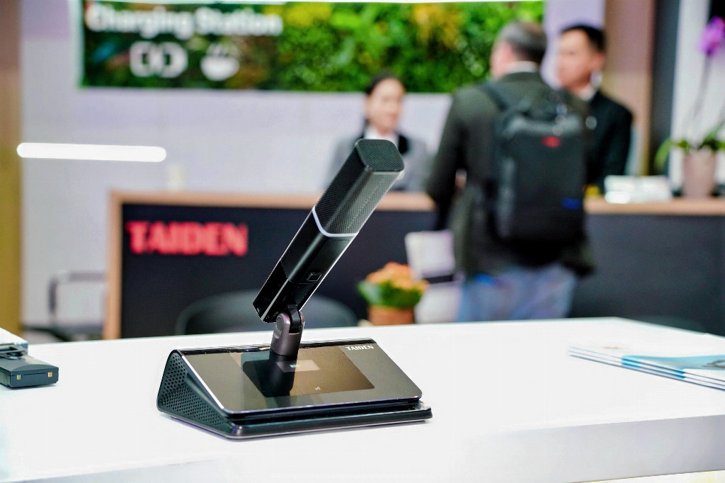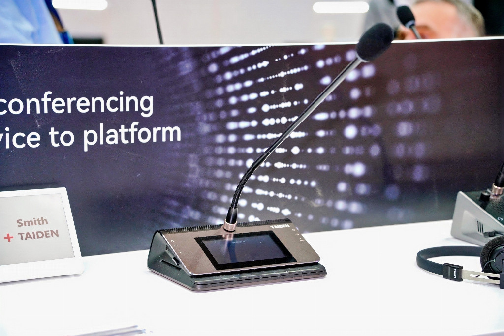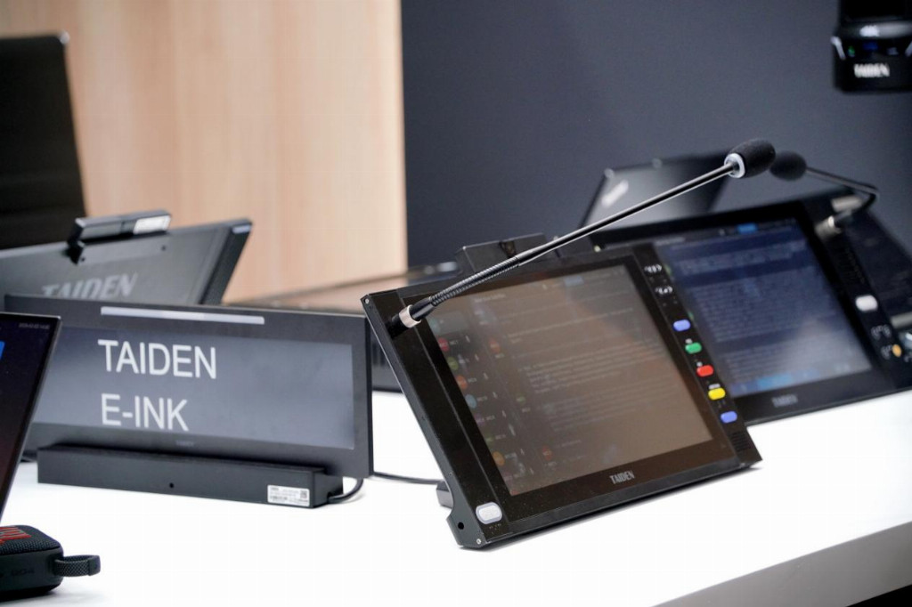 在重磅新品亮相的同时,TAIDEN 经典拳头产品也悉数展出,形成 “新锐突破” 与 “经典传承” 交相辉映的完整产品矩阵。全数字会议系统、无纸化多媒体会议系统、电子名牌等系统产品集体登场,覆盖台面、嵌入式等多种设计,适配不同场景需求。