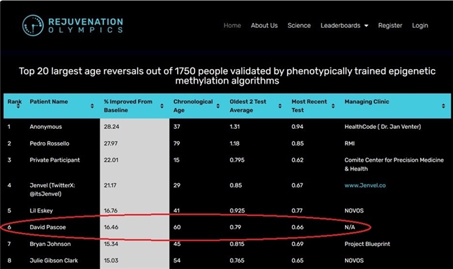 图注:排名第6的Dave Pascoe,逆袭每年豪砸200万的硅谷富豪(Bryan Johnson)