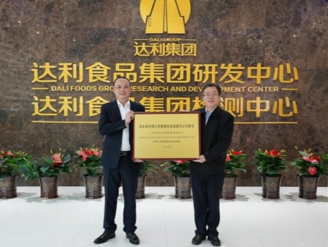 达利食品集团生产副总裁陈伟军和农业农村部食物与营养发展研究所所长王凤忠合影
